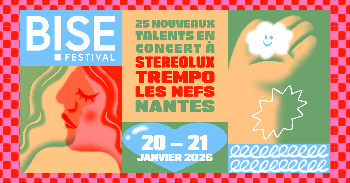 Mar. 20 Janv. 2026 Mer. 21 Janv. 2026 BISE Festival : Pass 2 soirs ARTICLE 15 • DRESSED LIKE BOYS • JASMINE NOT JAFAR • JAMES LOUP • KIMIA • MEDICIS • NAYA MÖ • NOÉE • VANILLE • WHITE CORBEAU